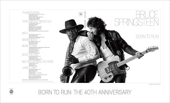 But he’s also still the guy who shot the Born to Run cover and this summer is the 40th anniversary and some more friends, the crew at Backstreets, along with Meola, Sony, and John Landau management, have worked up 1,975 beautiful posters featuring the iconic shot of Bruce leaning on Clarence.